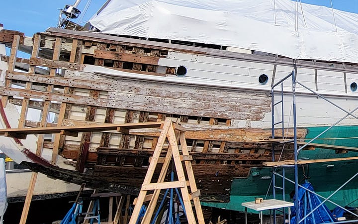 Many of you don’t know that my Sailor Steve Uhthoff retired from a successful career in yacht repair, rebuild and refit as well as keel design. Some of you Annapolitans might remember the notorious Steve’s Yacht Repair and more recently Annapolis Fiberglass & Gelcoat based near and within Jabin’s sprawling marine operation. “We did that work because no one else wanted to, I liked it, and I made money doing it,” the hard labor was a trade-off, but who thinks of these things when life is happening full-tilt, full of challenges and a desire to be the best? That business sold just after he and I met in 2019 so he could venture back out on the water, see if I was worthy of such a life and also decide if it still brought the same joy he remembered. I’m not sure worthy is the main description I would use for me.